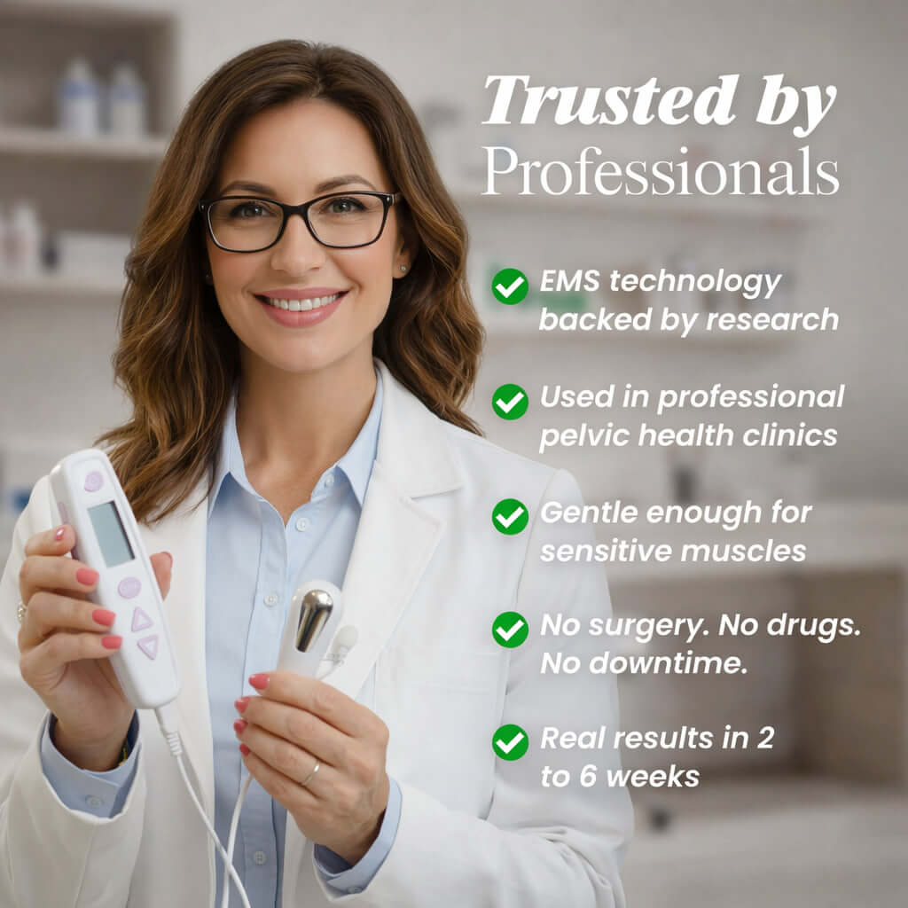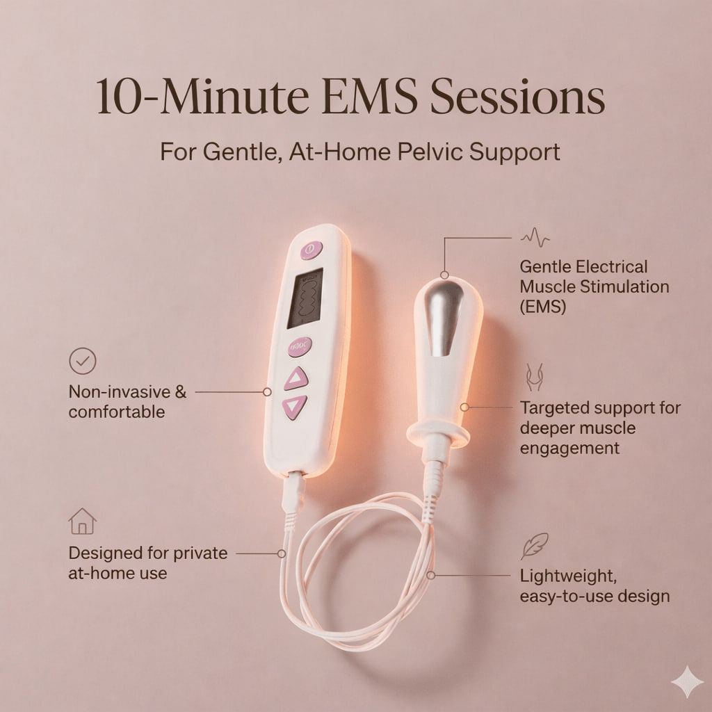 Many women struggle to engage the right muscles with traditional Kegels. EMS technology eliminates the guesswork by directly activating your pelvic floor. It’s the fastest, most reliable path to regaining your confidence.